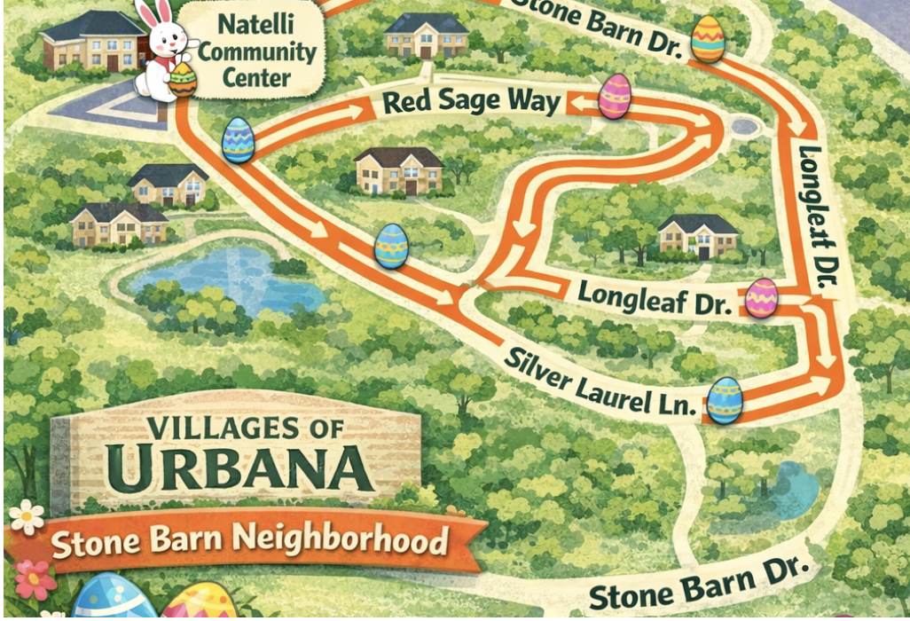 Join us for our Easter Bunny Parade right in the heart of the Villages of Urbana. We will begin this parade on Thursday April 2nd at 530 p.m. at the Natelli Community Center and we will finish the route at the Stone Barn Community Center. With stops along the way, our Easter Bunny and friends will get out to interact with you and the family for pictures and goody bags. Final map of the route will be posted soon. Mark your calendars now!