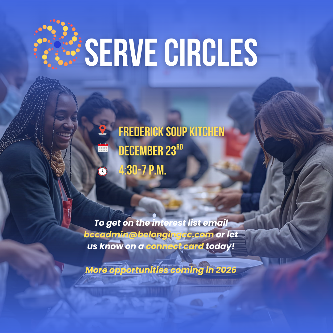 Serve Circles – Put love into action by serving our community. Whether it’s volunteering locally or helping someone in need, these circles make God’s love visible.
