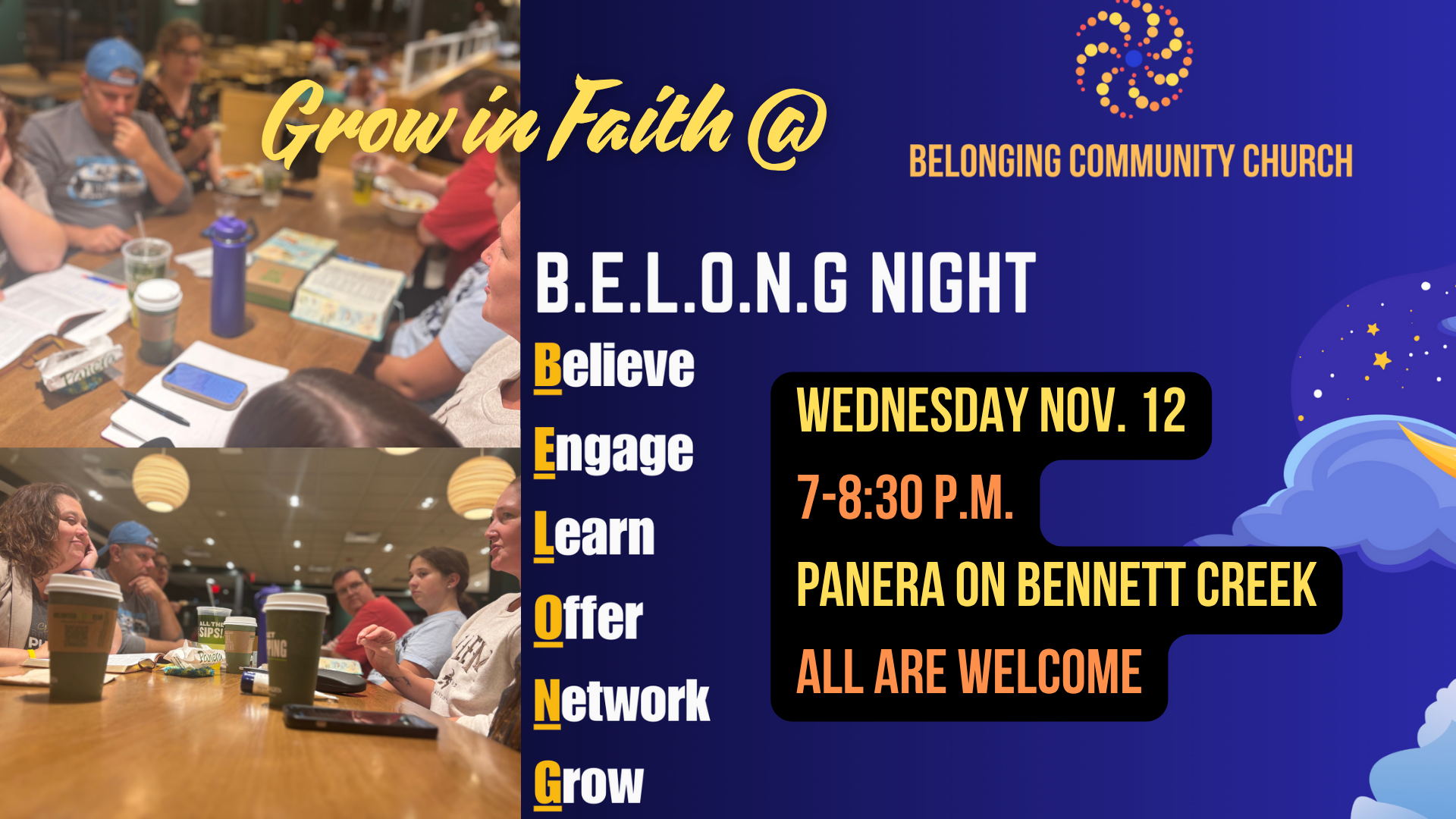 Belong Nights – A space to dive deeper into Scripture, ask honest questions, and discover what it means to follow Jesus in everyday life.
